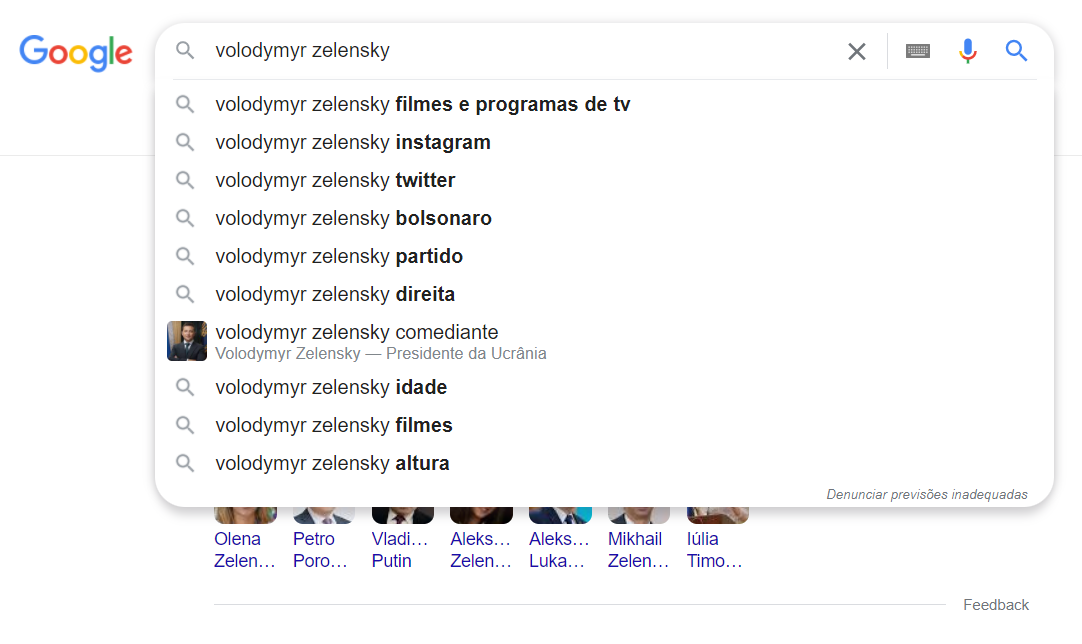 Assim que os indícios de que a guerra de fato iria se estabelecer na Ucrânia, o mundo voltou seus olhos para o país, mas mais especificamente para o seu maior líder, Zelensky. A mídia foi prontamente dura, quase se esquivou de falar que ele foi eleito pelo povo democraticamente, para ao invés disso, enfocar a cobertura evocando pejorativamente sua formação e trajetória profissional enquanto ator e comediante, como se a carreira de ator e comediante inclusive muito se afastasse do desempenho de muitos políticos que conhecemos com proximidade. Aliás fiz um teste no Google e antes de aparecer ‘Volodymyr Zelensky presidente da ucrânia’ pelo menos outras 5 associações aparecem como de maior procura associdada, entre elas ´Volodymyr Zelensky filmes e programas de TV’ e ‘Volodymyr Zelensky comediante’.