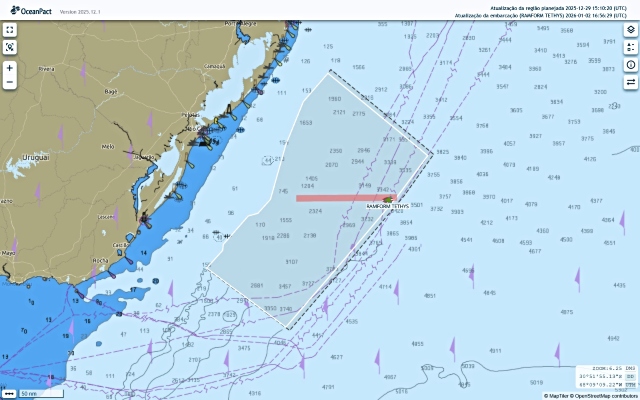O aplicativo detalha a localização exata dos navios Ramform Titan e Ramform Tethys, que operam nas porções Norte e Sul da bacia, respectivamente. A iniciativa visa prevenir incidentes em uma área de intenso tráfego marítimo e atividades pesqueiras.